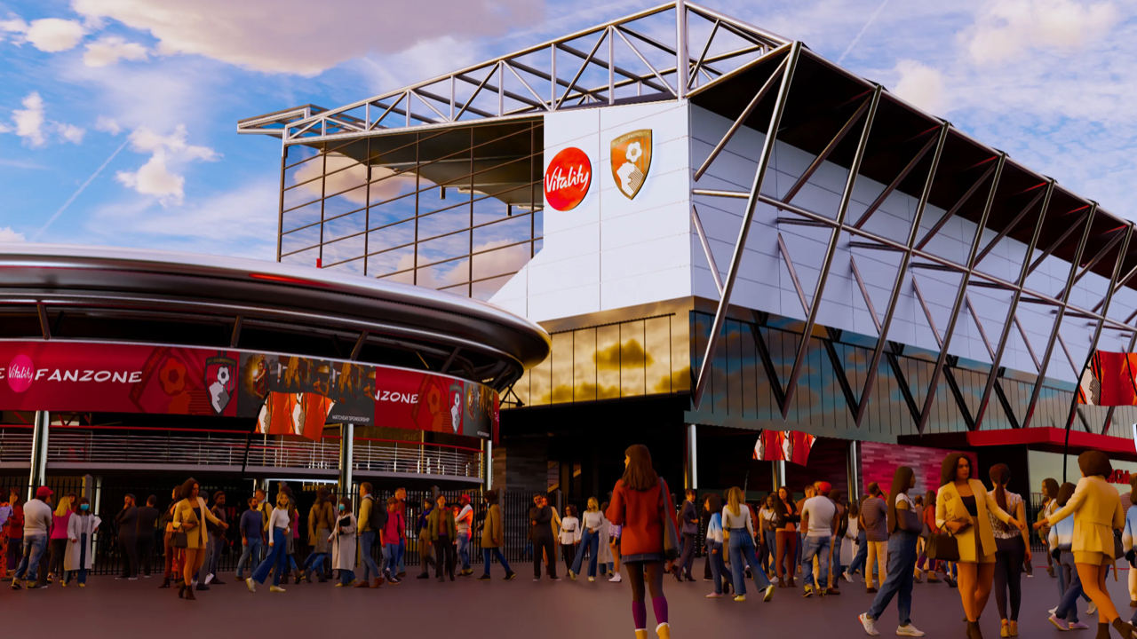 Work has started on the redevelopment of AFC Bournemouth’s Vitality Stadium after approval in January. The South Stand will be demolished at the end of this season, with a new three thousand seat lower tier built in its place. Turnstiles and the ticket office will move to a new perimeter, creating more space outside the ground. Capacity will rise by more than one thousand five hundred seats at first, with further expansion planned to take it to over twenty thousand.